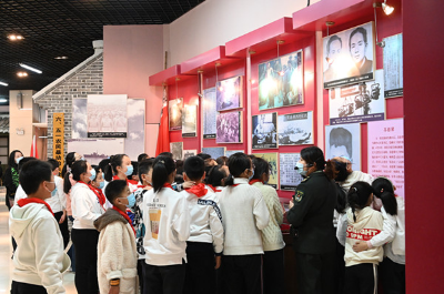 少先队员们站立在纪念馆前,鲜艳的红领巾飘扬在胸前,他们带着对革命先烈的崇敬之情,列队走进纪念馆。