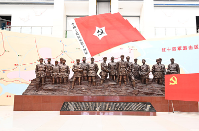 来到寻访地,首先映入眼帘的就是“红十四军公园”六个红底鎏金大字,迎面而来的红十四军纪念馆,像一面迎风飘扬的军旗,门口硕大的红五星,彰显红十四军的辉煌历史。