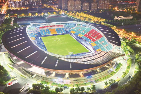 18日晚拍摄的江苏省城市足球联赛(苏超)南通队主场——南通足球训练中心如皋基地(如皋奥体中心)美丽夜色。今晚,这里将迎来南通VS盐城的“苏超”赛事。