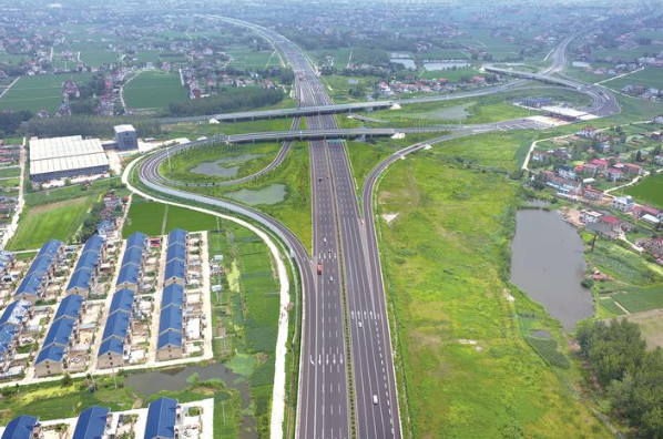 3日拍摄的沪陕高速公路平潮至广陵段扩建工程高速公路新貌和九华枢纽夏日美丽风光。 沪陕高速公路平潮至广陵段扩建工程全长约48.966公里,于去年年末建成通车。
