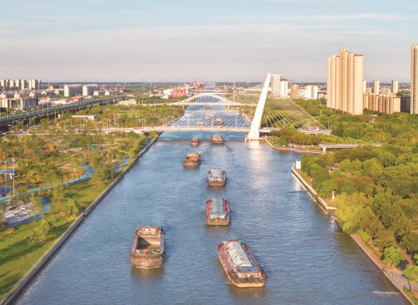 27日,货船在通州区通吕运河中通行。据南通市港航事业发展中心提供的信息,截止到8月28日,全市五座船闸货物通过量70629.29万吨,减免优惠船舶过闸费1453.93万元,免征集装箱运输船舶过闸费398.30万元。