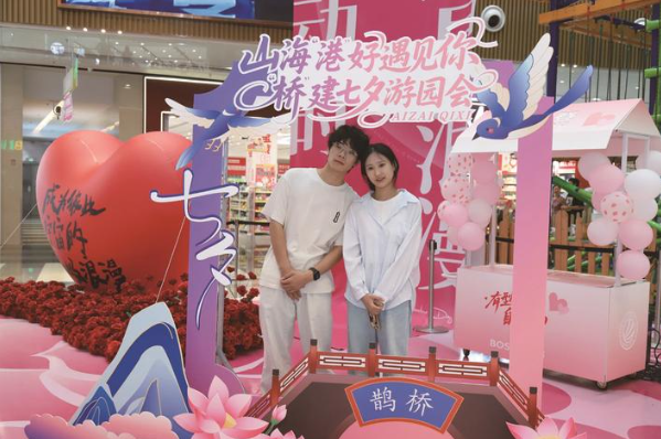 29日,崇川经济开发区山港桥社区举办七夕游园会。活动现场,社区搭建起一座精美的“鹊桥”,并精心设置了投壶、猜灯谜等古风小游戏,供市民打卡拍照,体验传统文化之美。