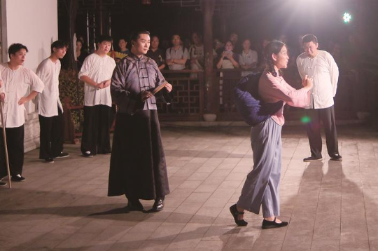 9月3日晚,由南通市文化艺术创作研究中心出品,南通艺术剧院、南通市文化馆共同创作的原创实景沉浸式话剧《棠梨花开》在伶工学社进行公益性惠民首次试演。该剧以民国初年张謇创办的伶工学社为背景,讲述戏剧教育家欧阳予倩等先驱者们在南通推动戏剧教育革新、坚守艺术理想的故事。