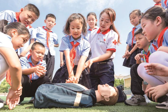 新学期伊始,通州区红十字会与通州区南山湖小学联合开展以“守护成长 ‘救’在身边”为主题的“安全开学第一课”。红十字志愿者通过生动讲解与实操示范,细致传授各种实用急救知识,增强小学生的安全防护理念。