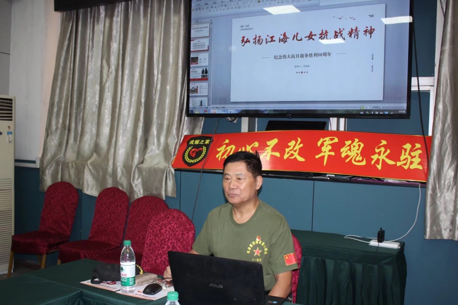 南通爱国拥军爱心驿站党员志愿者沈玉生以《致敬苦难岁月》为题向大家介绍了南通抗战遗址地标。他说,江海大地,是无数革命先烈战斗过、流血牺牲的热土,南通抗战遗址地标是南通人民英勇抗战历史的教材,见证了烽火硝烟的惨烈,记录了江海儿女英勇不屈的历史,揭露了侵华日军的残暴。沈玉生逐一介绍了南通抗战遗址地标,为大家讲述了《天生桥新四军一枝梅锄奸故事》、《江海热血映山河,兄弟英烈铸精神》的南通军民抗战故事。