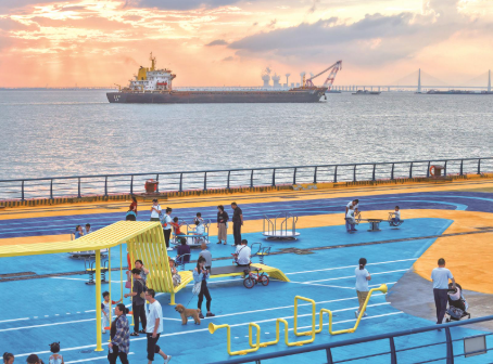 23日傍晚,众多市民和游客在南通长江体育公园游玩、健身、欣赏美丽夕阳。南通长江体育公园对外开放近一个月,成为长江南通段深受欢迎的打卡地。据悉,紧邻长江南通段的南通长江体育公园整体分为绿茵足球、社区友好及休闲时尚三大主题功能区,将打造成为集市民休闲、运动健身、文化艺术及便民服务于一体的综合景观空间,满足各类人群多样化的运动与游憩需求。