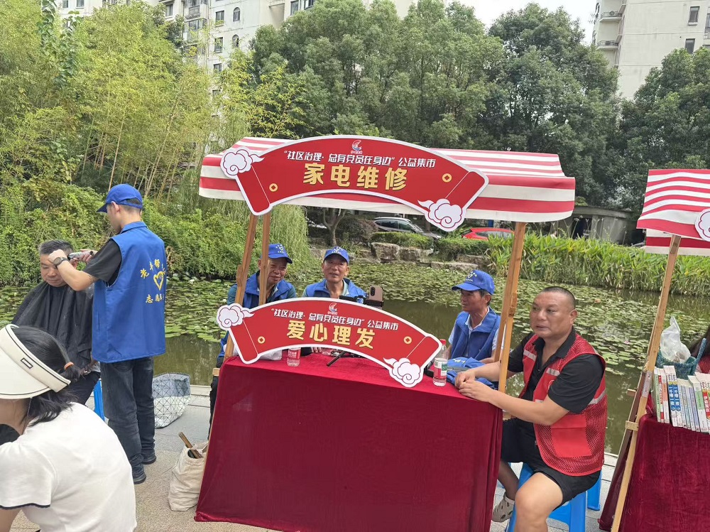 在崇川区永兴街道永兴社区高迪晶城居民小区,丰志成、刘学志、陆海青、纪建明等志愿者带着工具来到小区广场,他们刚刚摆好服务摊位,立即引来居民们的围观和咨询,居民们带来了微波炉、烧水壶、小电扇等请志愿者帮助修理。李大爷拿来微波炉请志愿者帮忙看一看,志愿者刘学志用仪器进行了测量,查出了保险丝和线路都有问题,立即进行了修理,很快通上电就能使用了。免费理发志愿服务项目,同样深受居民们的欢迎,子女搀扶着父母,爸爸妈妈带着孩子,大家依次进行理发。当天共为20多位居民进行了理发。大家纷纷称赞志愿服务队为居民们做了一件实事好事。