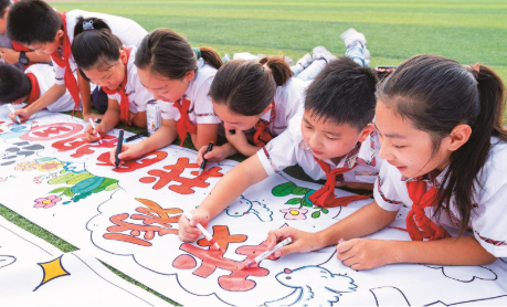 国庆节临近,海安市城南实验小学昨天举行“彩绘画卷迎国庆”活动。学生们在画布上尽情挥洒,表达对祖国的美好祝福。